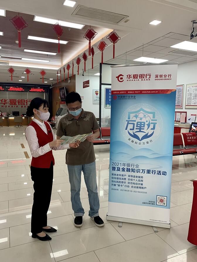 深圳新聞網(wǎng)2021年6月21日訊(記者 朱琳)為增強(qiáng)社會公眾參與金融活動風(fēng)險識別能力,引導(dǎo)消費者正確運用金融知識,增強(qiáng)風(fēng)險意識和責(zé)任意識,共創(chuàng)和諧金融環(huán)境,近日,華夏銀行深圳分行組織全轄網(wǎng)點開展2021年“普及金融知識萬里行”、“普及金融知識守住錢袋子”、“防范非法集資宣傳月”等金融知識宣傳普及活動。