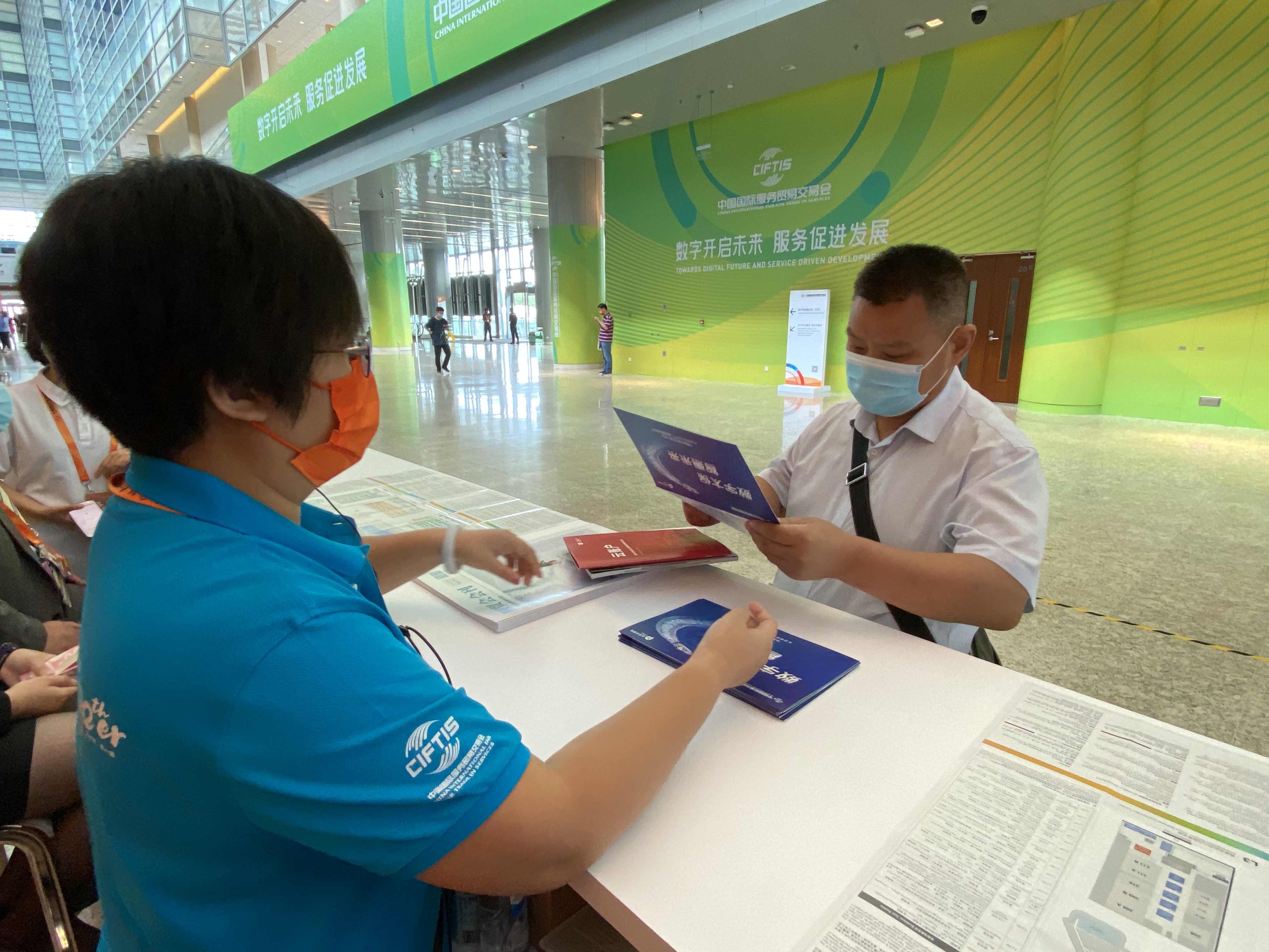 9月3日下午,一位女士焦急的地在服貿(mào)會首鋼園區(qū)攔住了中國太保工作人員王文雨和周銳。