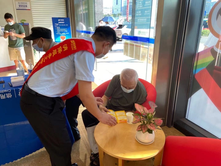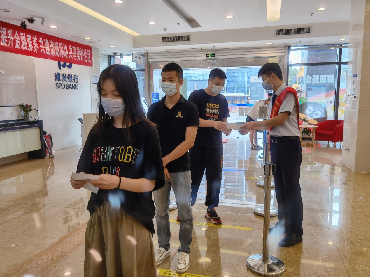 恰逢“金融知識普及月”,浦發(fā)銀行工作人員借助兌換活動契機,向市民朋友普及人民幣相關(guān)知識,號召大家愛護人民幣,自覺抵制破壞人民幣的行為,維護人民幣的法定地位。