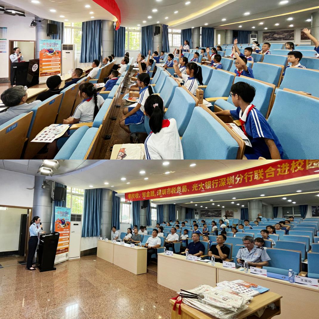 深圳新聞網(wǎng)2021年10月11日訊(記者 朱琳 通訊員 樓蓉 沈婷)稅收從哪里來(lái)到哪里去?社會(huì)保險(xiǎn)是什么?什么是金融社????金融社??ㄕl(shuí)可以辦理?……近日下午,國(guó)家稅務(wù)總局深圳市稅務(wù)局與光大銀行深圳分行在深圳市南山小學(xué)共同開(kāi)展一場(chǎng)“懂稅收、知金融,我是小小代言人”活動(dòng)。社保繳費(fèi)服務(wù)是社保征收服務(wù)的重要一環(huán),深圳市稅務(wù)局發(fā)揮征收大數(shù)據(jù)政策找人和精準(zhǔn)服務(wù)的優(yōu)勢(shì),光大銀行深圳分行發(fā)揮金融機(jī)構(gòu)在繳費(fèi)服務(wù)中網(wǎng)點(diǎn)多、覆蓋面廣的優(yōu)勢(shì),兩單位強(qiáng)強(qiáng)聯(lián)手開(kāi)展活動(dòng),確保少兒醫(yī)保應(yīng)享盡享、應(yīng)保盡保。