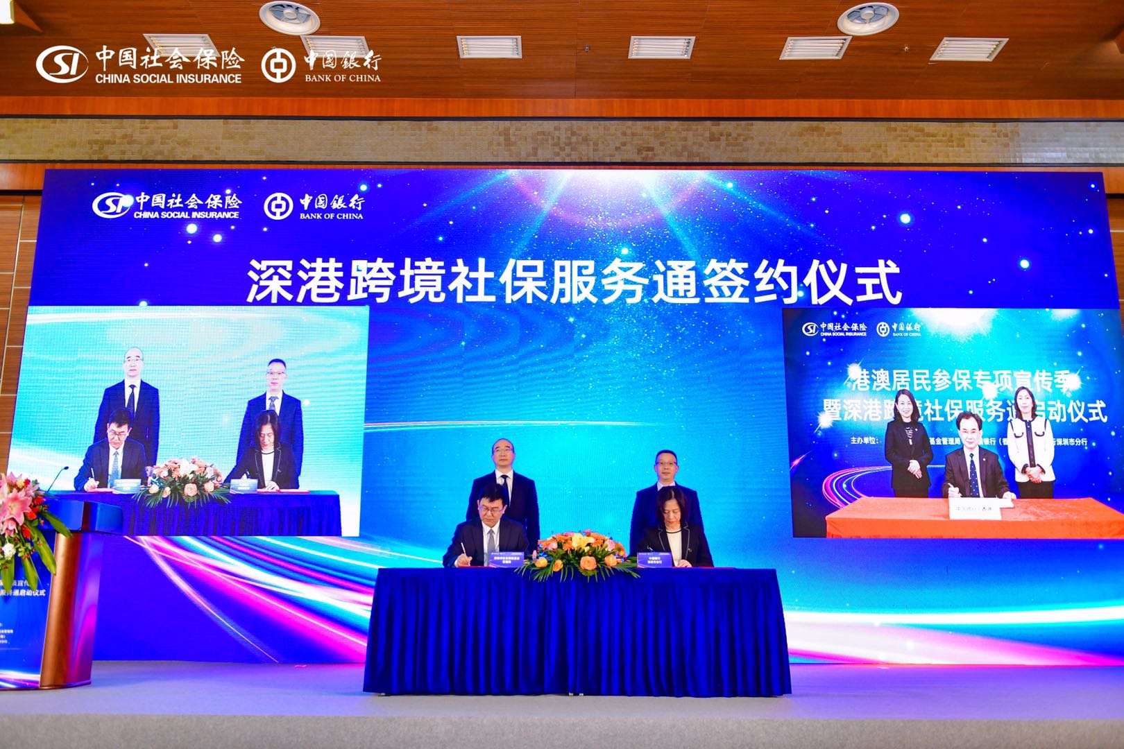 啟動(dòng)儀式上,深圳市社保局與中銀香港、深圳中行簽訂合作協(xié)議,通過(guò)社銀合作,社保現(xiàn)場(chǎng)服務(wù)首次跨境走進(jìn)香港,香港居民能夠在“家門口”暢享優(yōu)質(zhì)、高效、便利的深圳社保服務(wù),正式開(kāi)啟了深港社??缇撤?wù)新局面。12月2日起,符合條件的港澳居民可在中銀香港指定網(wǎng)點(diǎn)申請(qǐng)靈活就業(yè)和城鄉(xiāng)居民養(yǎng)老保險(xiǎn)參保登記業(yè)務(wù)。