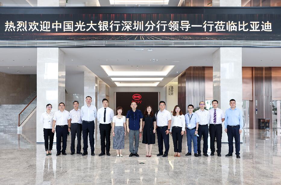 2018年12月11日,光大集團(tuán)與比亞迪在中國(guó)光大中心簽署戰(zhàn)略合作協(xié)議。次年9月,李曉鵬董事長(zhǎng)前往深圳調(diào)研比亞迪,與比亞迪董事長(zhǎng)兼總裁王傳福進(jìn)行工作會(huì)談,雙方合作更為密切。2021年6月9日,光大銀行深圳分行行長(zhǎng)韓學(xué)智率隊(duì)拜訪比亞迪集團(tuán),雙方就踐行國(guó)家“創(chuàng)新、協(xié)調(diào)、綠色、開(kāi)放、共享”發(fā)展理念,進(jìn)一步落實(shí)中國(guó)光大集團(tuán)與比亞迪集團(tuán)重要戰(zhàn)略合作協(xié)議,深化綜合金融服務(wù),加強(qiáng)協(xié)同聯(lián)動(dòng)發(fā)展等方面進(jìn)行座談,為下一步光大銀行與比亞迪集團(tuán)的合作打下堅(jiān)實(shí)的基礎(chǔ)。