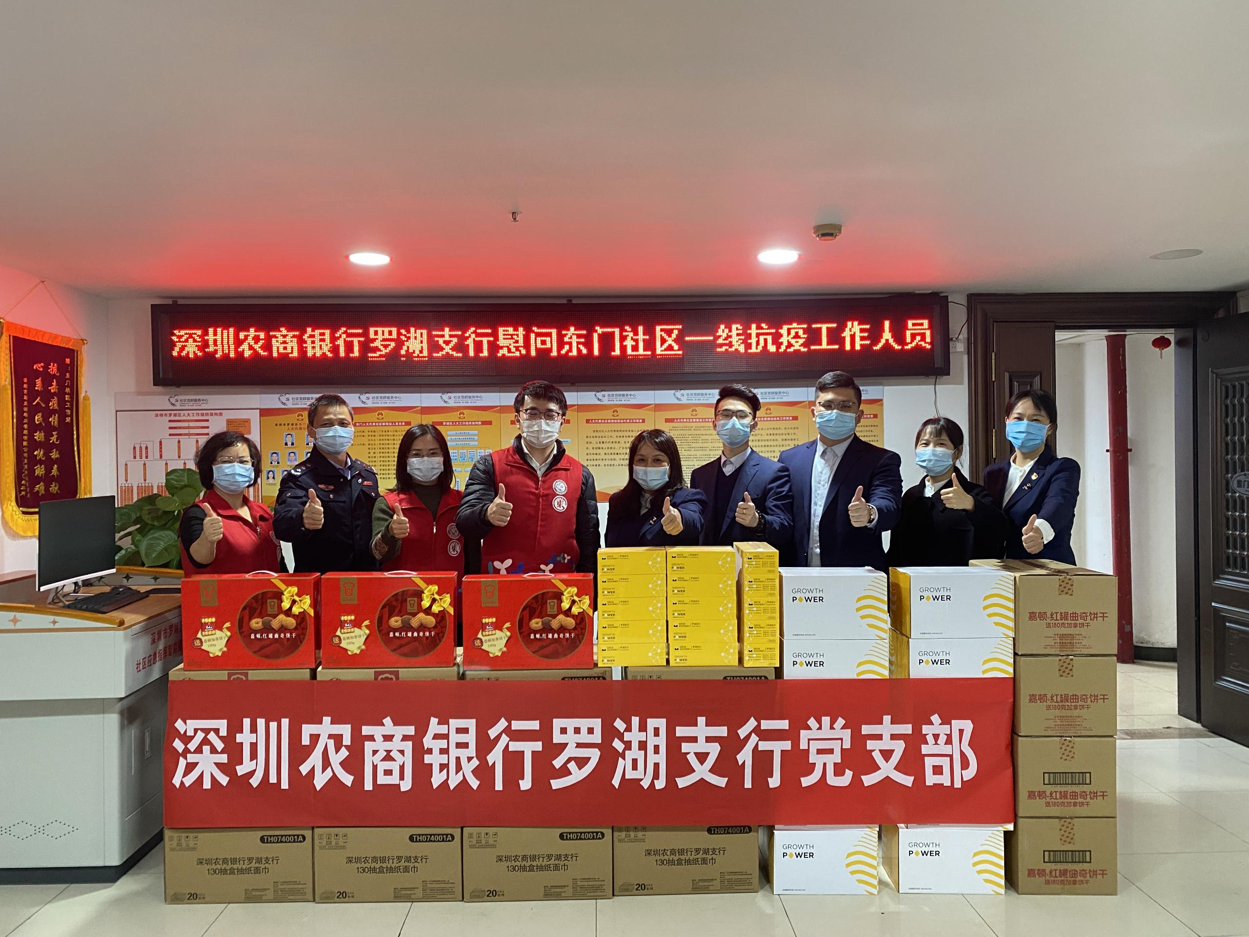 此次慰問活動的開展也得到了深圳農(nóng)商銀行羅湖支行企業(yè)客戶的積極響應(yīng)。易普森集團(tuán)、深圳市富寶東門市場管理有限公司在獲悉深圳農(nóng)商銀行此次活動后,積極響應(yīng),表示要為羅湖區(qū)做一份貢獻(xiàn),于是與該行攜手為羅湖區(qū)前線抗疫人員送去物資和問候。