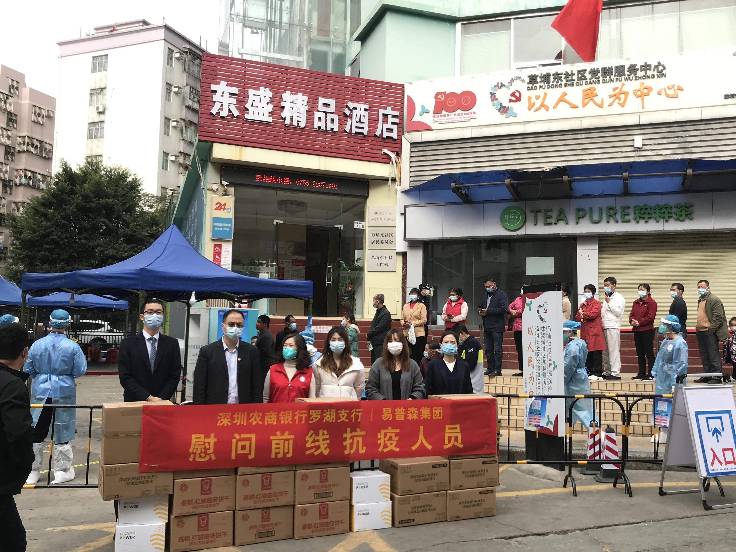 草埔東社區(qū)工作站張廣華書張書記表示:非常感謝前來慰問的單位和企業(yè),心暖暖的,知道有很多人在關(guān)心他們,累點苦點沒什么。這也是深圳農(nóng)商銀行羅湖支行發(fā)起本次活動的初衷,希望物資不僅帶給抗疫人員體能上的補(bǔ)充,同時也讓他們感受到他們不是一個人在戰(zhàn)斗,大家一起協(xié)力,共同打贏深圳這場疫情防控阻擊戰(zhàn)。
