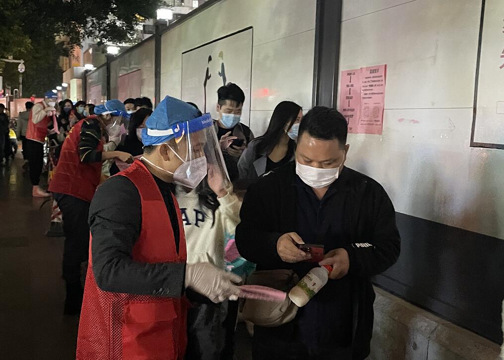 2月18日,青年志愿者們顧不上吃晚飯,一下班就奔赴南園社區(qū)核酸篩查檢測點,與南園社區(qū)的志愿者們一起投入到維護核酸采集秩序的隊伍中,一直服務(wù)到深夜。