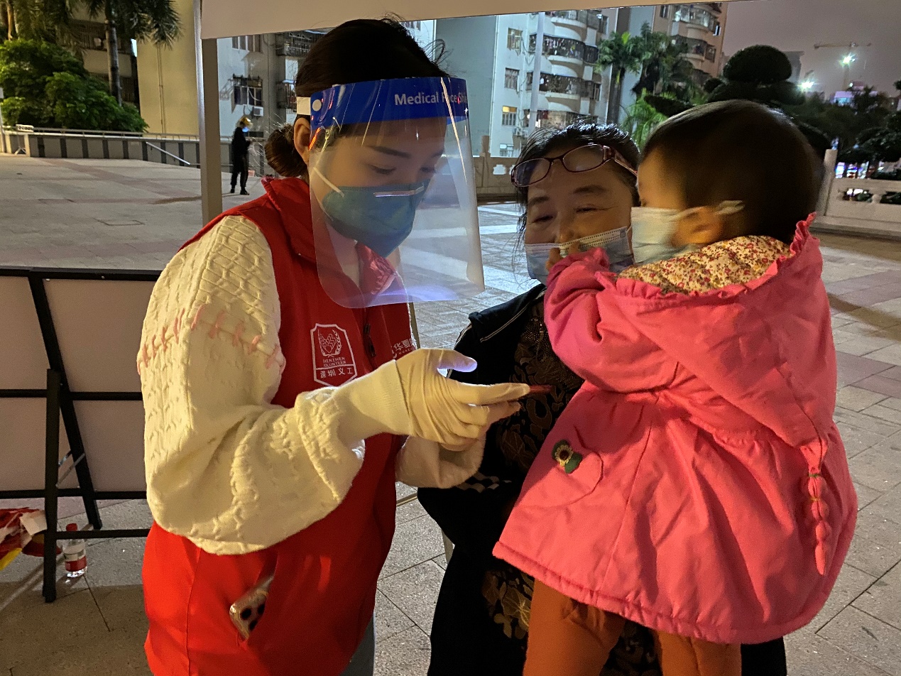 2月18日晚,寒風(fēng)瑟瑟的夜里,皇崗社區(qū)核酸采樣點(diǎn)還排著長龍。華夏銀行深圳分行的黨員、青年團(tuán)員迅速集結(jié)為“青年突擊隊(duì)”,在做好安全防護(hù)的基礎(chǔ)上,深入福田街道皇崗文化廣場、高發(fā)城馳廣場核酸采集點(diǎn),協(xié)助防疫工作組維護(hù)現(xiàn)場秩序、身份信息登記等志愿服務(wù)工作,幫助社區(qū)提升核酸檢測效率。高新支行儲(chǔ)雨欣耐心地指導(dǎo)一位抱著小孩的阿姨錄入核酸檢測信息,她趕到核酸采樣點(diǎn)已經(jīng)接近晚上8點(diǎn)?!皠倓倧闹熊堎~下班,雖然有些晚了,但我還是想來?!?/p>