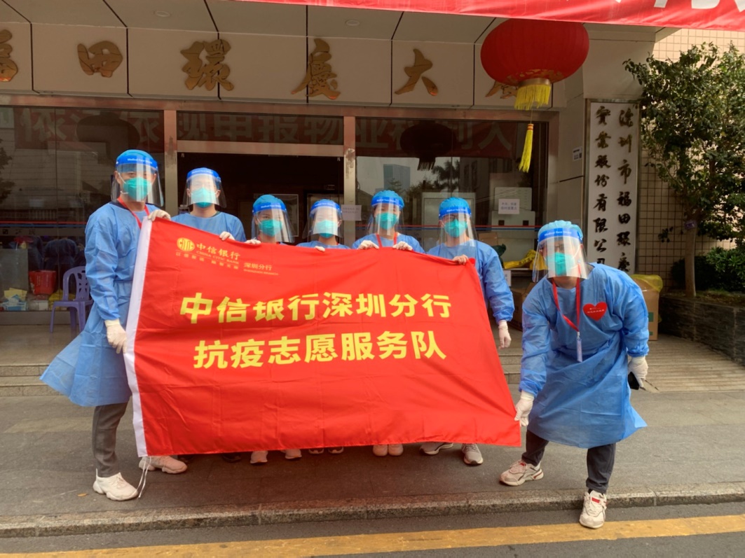 3月17日凌晨,在福田區(qū)金融局招募志愿者通知發(fā)出后,中信銀行深圳分行迅速向全轄發(fā)出倡議,在短短時(shí)間內(nèi)便有將近30名志愿者報(bào)名。經(jīng)過任務(wù)條件篩選,該行組建了首批由8名黨員和1名團(tuán)員組成的抗疫志愿服務(wù)隊(duì)。