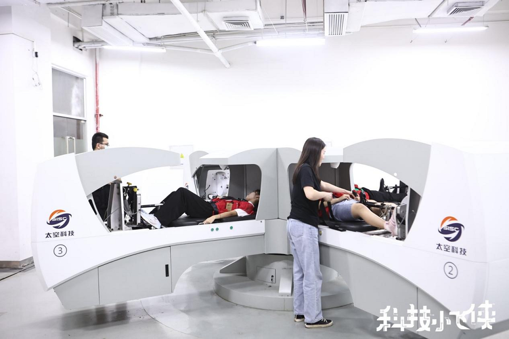 除了太空廢棄物處理實驗,航天訓(xùn)練體驗也得到了孩子們的認(rèn)可?;顒蝇F(xiàn)場,短臂離心機、模擬失重床等設(shè)備模擬出了航天員的日常訓(xùn)練場景,還沒等講解老師解說完,就有不少小飛俠們歡呼雀躍,迫不及待地想體驗航天員日常訓(xùn)練,旋轉(zhuǎn)、漂浮,小朋友們玩得不亦樂乎,在玩樂的同時,也學(xué)習(xí)到了更多航天知識。