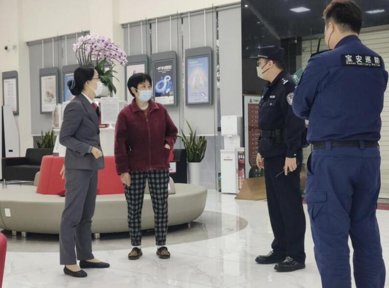 事發(fā)當天17時左右,一位老年客戶氣喘吁吁地走進寶安支行,神色慌張,支行員工田笑竹見狀立刻接待,并主動安撫客戶情緒。通過詢問發(fā)現(xiàn),客戶被盜用了個人信息,銀行賬戶可能存在風險。