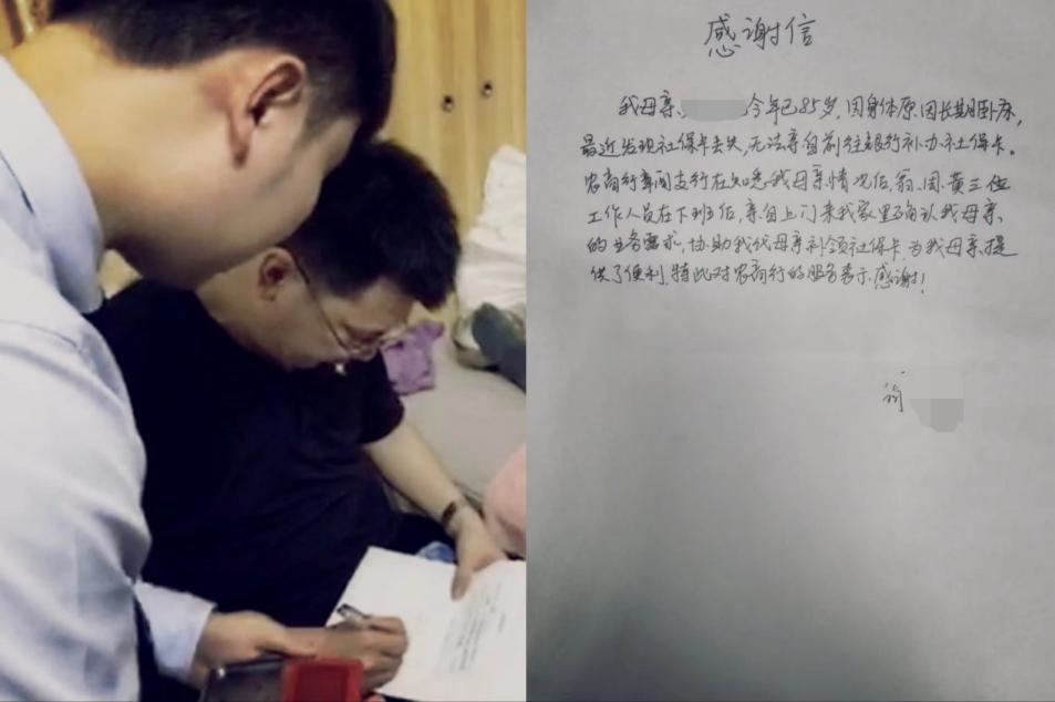 深圳農(nóng)商銀行觀瀾支行“窗口”移至“家門(mén)口”。2024年5月,觀瀾支行接到客戶(hù)翁先生反饋其85歲母親的社??ú簧鬟z失,急需補(bǔ)回卡取養(yǎng)老金。但阿婆長(zhǎng)期臥床,行動(dòng)不便,無(wú)法出門(mén)。針對(duì)此情況,觀瀾支行工作人員告知客戶(hù),可通過(guò)上門(mén)核實(shí)阿婆的情況及意愿后,由其代母親辦理。后續(xù)在確認(rèn)客戶(hù)時(shí)間后,觀瀾支行安排員工上門(mén)核實(shí)阿婆委托兒子辦理業(yè)務(wù)的意愿。在確認(rèn)其意愿清晰真實(shí)后,阿婆的兒子到網(wǎng)點(diǎn)為其代辦了相關(guān)業(yè)務(wù)??蛻?hù)為此手寫(xiě)感謝信對(duì)工作人員的貼心服務(wù)表達(dá)了感激。