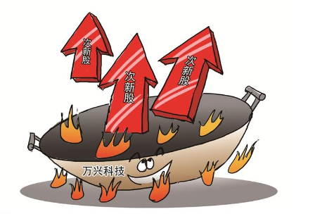 雖然經歷停牌核查,妖股萬興科技依然備受資金追捧,暴漲走出八個漲停板。次新小盤股外加近日大火的獨角獸概念,萬興科技成為當下最為炙手可熱的股票。龍頭“高燒不退”,次新板塊處于活躍期。