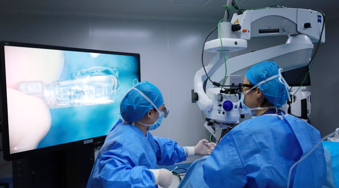 手術(shù)當(dāng)天,齊衛(wèi)主任憑借二十余年的臨床經(jīng)驗(yàn),在 3D 顯微鏡的輔助下穩(wěn)步操作。與傳統(tǒng)手術(shù)不同,3D 顯微鏡讓晶體植入的每一個環(huán)節(jié)都直觀可見,晶體的邊緣貼合度、居中位置都能實(shí)時把控。整個手術(shù)耗時不長,創(chuàng)傷小,朱小姐全程沒有明顯不適感。
