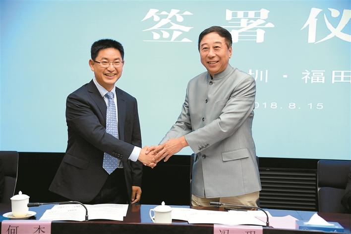 馮鞏與福田區(qū)政府簽署合作備忘錄。 胡蕾 攝