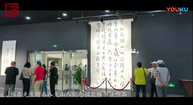 張?chǎng)蜗壬?zèng)與八大山人紀(jì)念館收藏的巨幅書(shū)法作品。