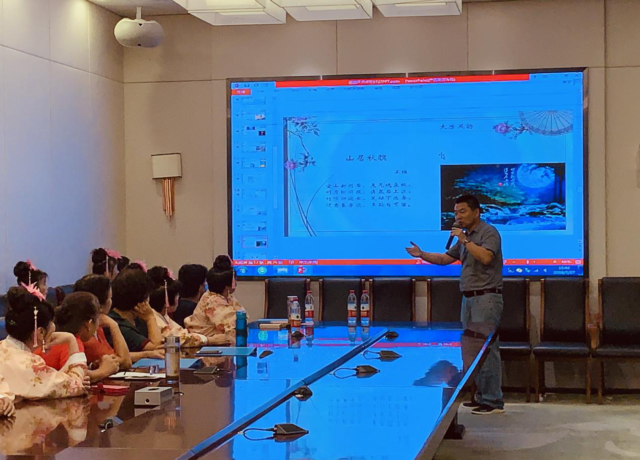 隨后,由心與六藝研習會副會長、壹書優(yōu)秀閱讀推廣人郝洪擔任閱讀講座的主講人,以“唐詩韻”主題,講解唐詩的魅力。郝老師從政治、經濟、軍事等多個方面解析唐詩達到歷史高度的必然性。他結合唐詩在文學史上的地位來闡明賞讀唐詩的必要性,并表示,唐詩所展現的雄渾大氣,詩化了今人的生活,可以將我們的審美提升到一個新高度。