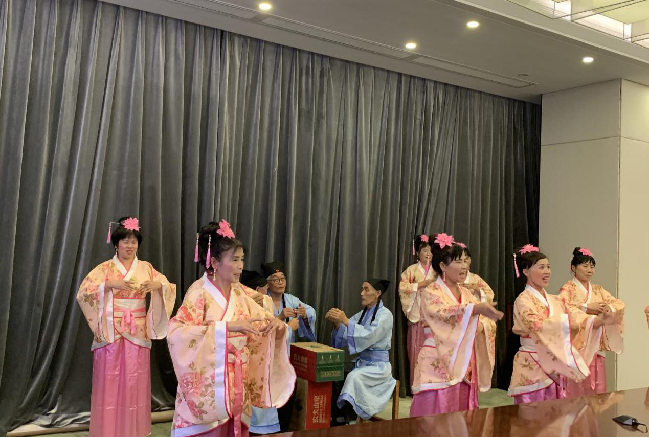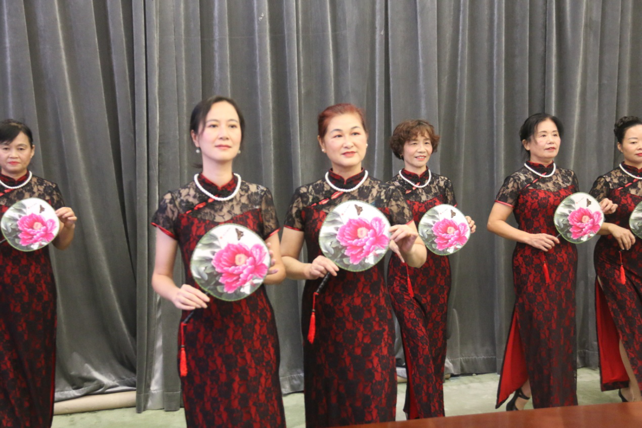 眾人矚目的文藝展演終于來了,社區(qū)居民的表演可圈可點、耐人尋味。旗袍秀詩誦《春江花月夜》,詩美、舞美、樂美、人更美,以故為新,別具一番味道;《將進酒》詩舞誦也頗有看頭,從服裝、道具、編排處處有新意,足見大家的用心,將詩詞、舞蹈與音樂融于創(chuàng)作中,給在場居民帶來了耳目一新的觀賞體驗。