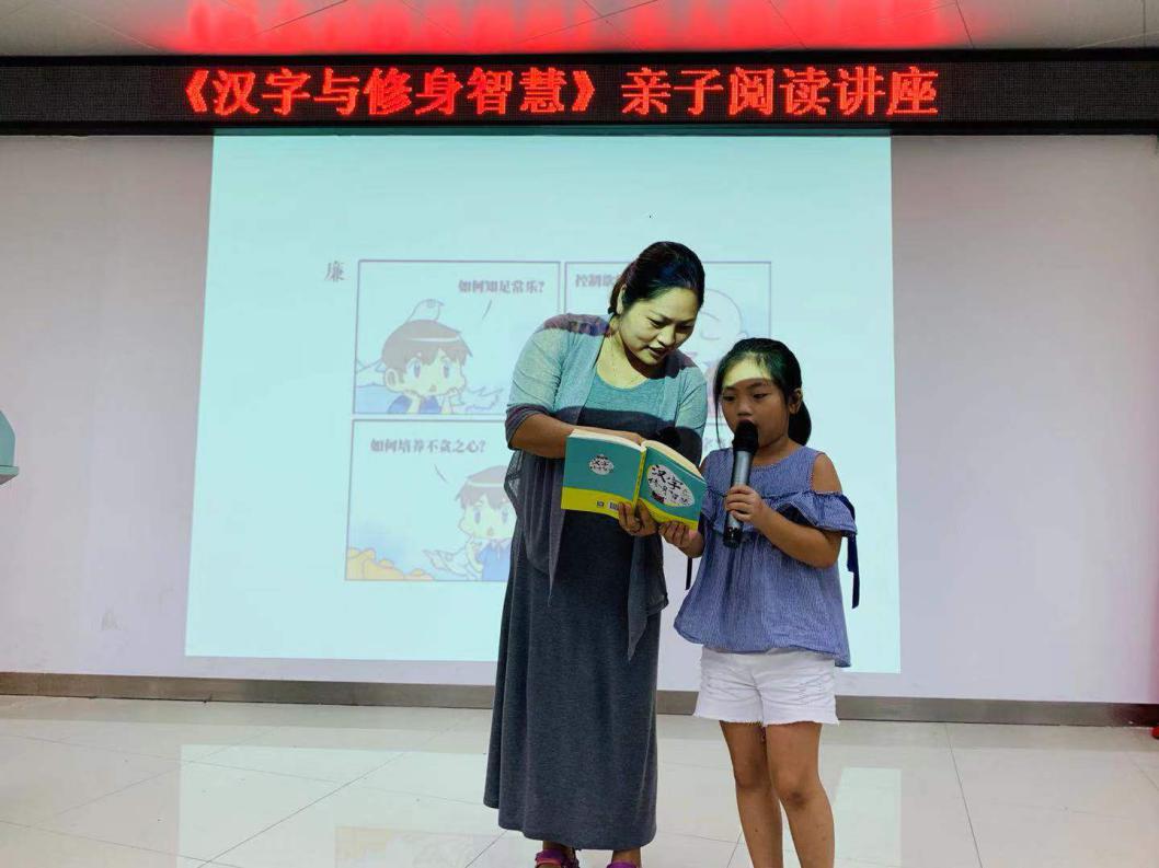壹讀書會(huì)創(chuàng)始人、知名閱讀推廣人、《漢字與修身智慧》作者劉建彪先生作為講座的主講人,準(zhǔn)備了“修身三十六字口訣”和漢字的漫畫,以“互動(dòng)為主,講授為輔”的方式,讓現(xiàn)場(chǎng)親子共讀一本書,共同感受漢字的力量。