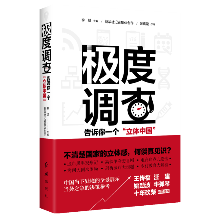 “他山之石,可以攻玉。”黨員干部除了直接調(diào)研,還要善于間接調(diào)查,研讀科研機構(gòu)和媒體的調(diào)研報告,通過專業(yè)人士的視角,了解國情。 《極度調(diào)查:告訴你一個“立體中國”》,就是一本記錄時代變遷的調(diào)研力作。新華社北京分社副社長、總編輯李斌者歷時三年,深入中國各地實施一系列重大調(diào)研,直擊民生痛點與焦點,全方位呈現(xiàn)了復(fù)雜多樣的中國社會現(xiàn)實。20余萬字的《極度調(diào)查》,來自繁華都市,來自風(fēng)云行業(yè),更來自深山峽谷、偏遠(yuǎn)山村,股市、高鐵、電商、生態(tài)、教育、貧困、健康等諸多方面均有涉及,傳達出了最一線、富有思想沖擊力的聲音。讀此書,全方位、多維度了解中國國情。