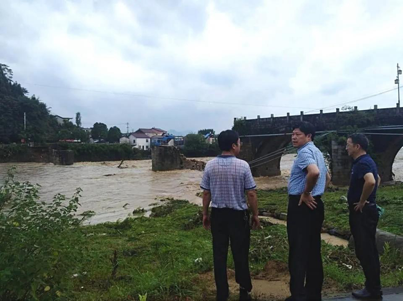 安徽省文物工作人員現(xiàn)場(chǎng)查看黃山鎮(zhèn)海橋受損情況(來(lái)源:國(guó)家文物局)