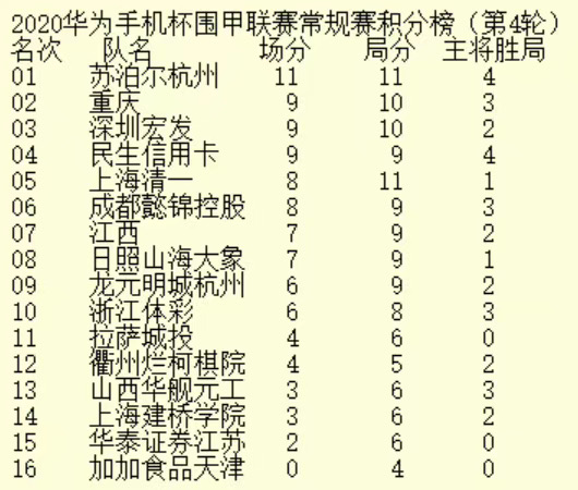 2020華為手機(jī)杯中國(guó)圍棋甲級(jí)聯(lián)賽第四輪深圳宏發(fā)3:1龍?jiān)鞒呛贾?nbsp;