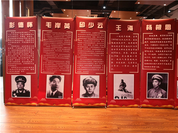《抗美援朝十大英雄和著名戰(zhàn)役宣傳展》主要以展板形式陳列在活動現(xiàn)場四周,以便于到場的人學(xué)習(xí)參觀。據(jù)悉,在抗美援朝戰(zhàn)爭中,中國人民志愿軍榮立三等功以上指戰(zhàn)員有302724名,被授予英雄、模范稱號和特等功人員502名,其中:特級英雄兩名,一級英雄50名,一級模范4名,二級英雄286名,二級模范75名,特等功85名。本次宣傳展收集了十位最有影響的英雄,他們是:彭德懷、楊根思、黃繼光、解秀梅、孫占元、邱少云、楊育才、張?zhí)曳?、王海、羅盛教。著名戰(zhàn)役有:上甘嶺戰(zhàn)役、馬良山爭奪戰(zhàn)、橫城反擊戰(zhàn)、云山之戰(zhàn)……參觀之后,許多人為英雄人物的言行所感動,表示要傳承發(fā)揚抗美援朝不畏強(qiáng)權(quán)的英雄主義和革命精神。