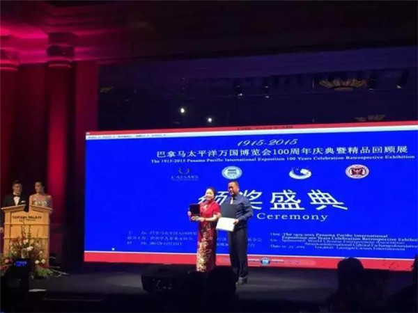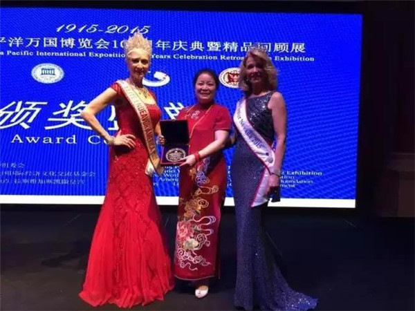 唐朝霞老師在萬(wàn)國(guó)博覽會(huì)獲獎(jiǎng)?lì)I(lǐng)獎(jiǎng)的情形。