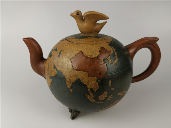 再說(shuō)第二件,《世界和平壺》的回歸。2020年6月,唐朝霞老師的愛(ài)人韋強(qiáng)先生正在深圳商會(huì)開會(huì)。其間,一次會(huì)議結(jié)束后剛回到酒店時(shí)手機(jī)響起!一位美國(guó)的朋友電話給他告訴他一個(gè)天大的喜訊:在日本發(fā)現(xiàn)了唐朝霞爺爺唐鳳芝的傳奇作品“世界和平壺”。韋強(qiáng)介紹說(shuō),1943年,因?yàn)樘气P芝是民國(guó)時(shí)的紫砂大師,民國(guó)政府委托唐鳳芝先生特制了“世界和平壺”,隨后,由宋美齡女士在赴美國(guó)演講時(shí)一起帶了過(guò)去,象征著世界和平之意!想不到時(shí)隔80年,竟然在日本出現(xiàn)了。韋強(qiáng)說(shuō),看到實(shí)物照片時(shí),真的太激動(dòng)了!此前,他們?cè)诩依镏豢吹竭^(guò)爺爺設(shè)計(jì)的圖紙,從沒(méi)看到過(guò)實(shí)物,接到這意外訊息真的是驚喜萬(wàn)分!真是難以入眠!通過(guò)一系列的協(xié)調(diào),日本的藏家愿意轉(zhuǎn)讓,讓激動(dòng)的心更加興奮了,立即訂了機(jī)票,著手辦理“回歸事宜”。當(dāng)他終于在海關(guān)拿到了這件作品,包裝非常完好,便緊緊的抱在胸前:飄泊海外80年的“思念”終于落定了,爺爺唐鳳芝的“世界和平壺”終于回家了。韋強(qiáng)說(shuō):當(dāng)時(shí)的心情無(wú)法用言語(yǔ)形容!只覺(jué)得天空格外清新、陽(yáng)光格外燦爛!
