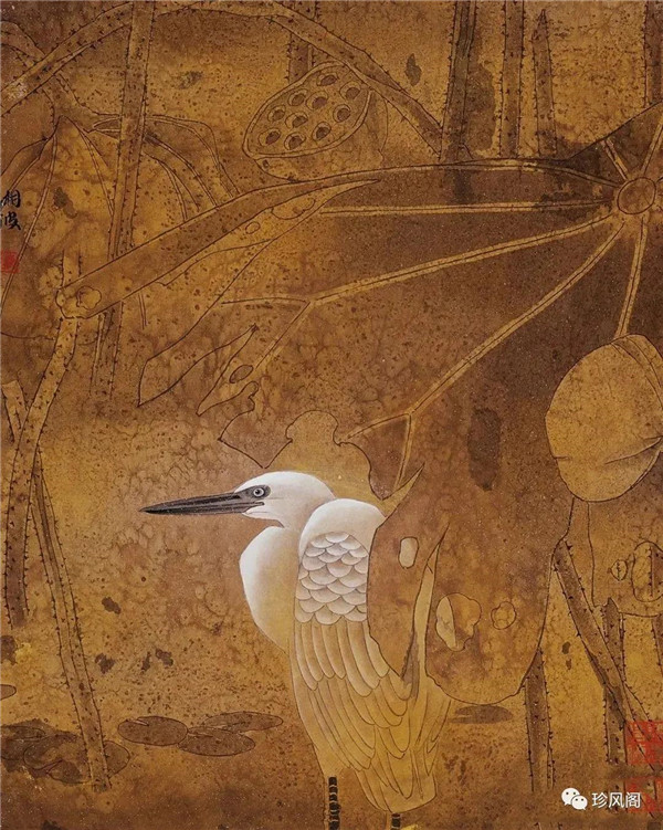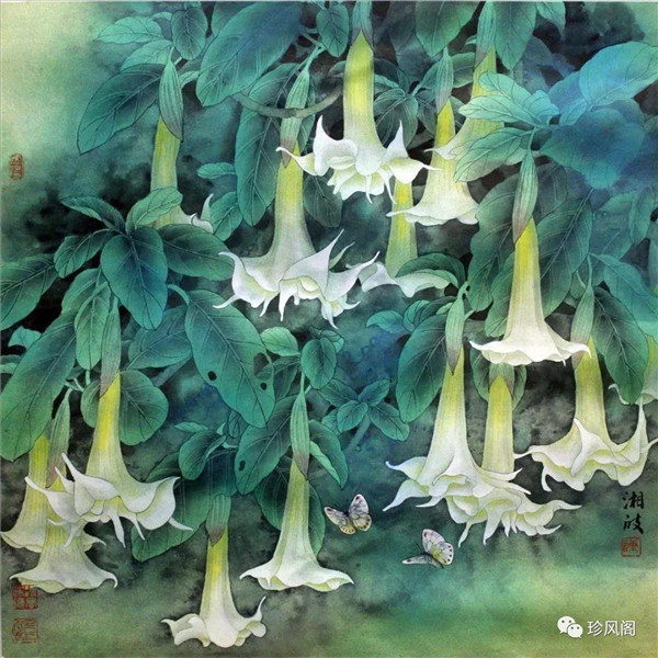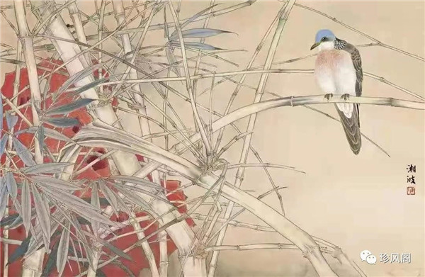 總的來看,陳湘波先生的工筆花鳥畫,繼承了嶺南畫派重生活、重色彩、重創(chuàng)造的優(yōu)秀傳統(tǒng),創(chuàng)作出來的是一系列意境深邃幽遠的作品。他在繼承傳統(tǒng)的基礎上,借鑒現(xiàn)代設計、西方繪畫的元素以及其他畫種的繪畫技法,形成了符合現(xiàn)代人審美的具有個人風格的當代工筆花鳥作品。