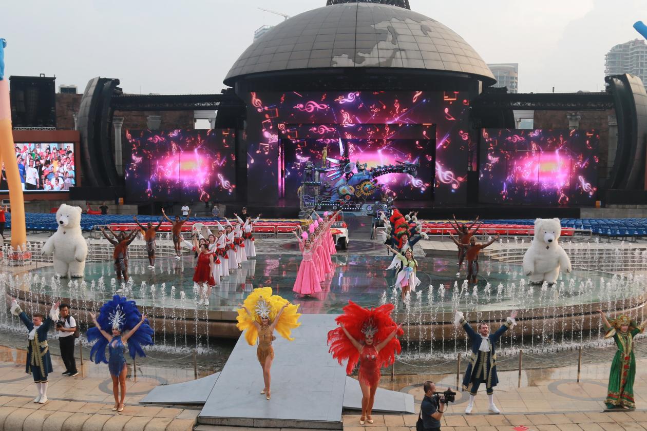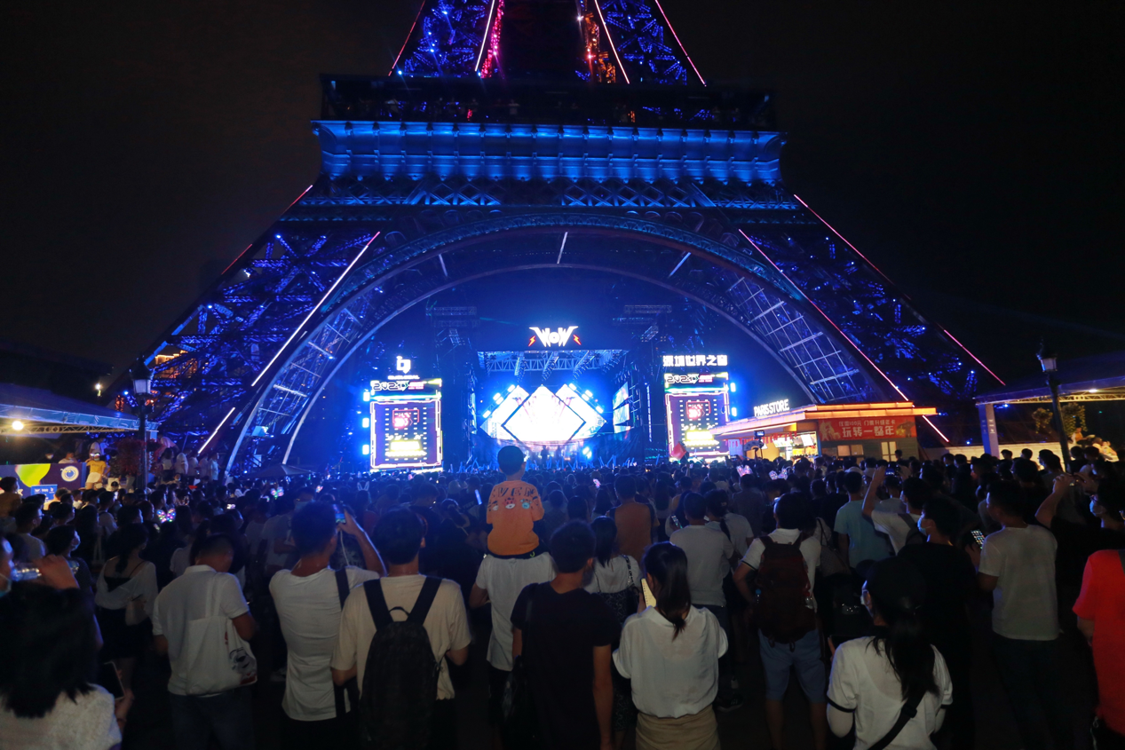 17:00—22:00鐵塔下,今年國慶最重磅節(jié)目超豪華陣容“WOW潮音嘉年華”閃亮登場,本屆潮音嘉年華群星璀璨,新生代實力歌手趙磊、狂歡一路歌舞相隨,國內dancerock先行軍“脆莓樂隊”一經出場全場狂歡吶喊,粉絲們瘋狂打 call!直擊心靈的音樂,震撼的舞臺效果游客們紛紛表示“值回票價”。接下來的幾天重磅明星接連不斷: solo新星趙讓、霓虹花園、Hiphop少年組合BOY STORY、脆莓樂隊、LeeyOn李昂、對角巷樂隊、布偶樂隊、圳動、黑玫瑰俱樂部、Spaceman太空人等演藝界先鋒人物將陸續(xù)登上舞臺傾情獻演,用充滿活力的青春姿態(tài)向未來致敬,現(xiàn)場游客沉浸其中,隨著歌手與音樂不斷嗨!環(huán)球舞臺同時上演大型音樂舞蹈史詩《盛世紀》;冰場廣場開啟魔幻光影秀《奇幻歐洲》。