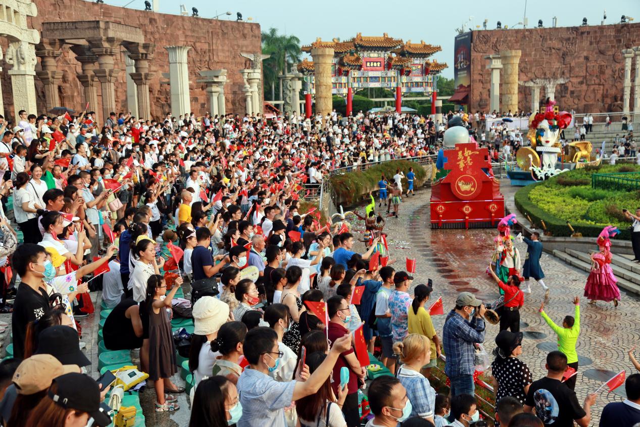 讀特客戶端·深圳新聞網2021年10月1日訊(記者 田志強 通訊員 陳嘉琳 黃海峰)今天,深圳世界之窗迎來第一波旅游小高峰。上午10:00整,世界之窗前廣場舉行了莊嚴的升國旗儀式,現(xiàn)場游客齊唱國歌,高亢嘹亮的歌聲響徹深南大道,激動人心。閘口處,俄羅斯歡樂家庭劇、異域風情迎賓禮以國際歡樂氛圍喜迎八方來客。