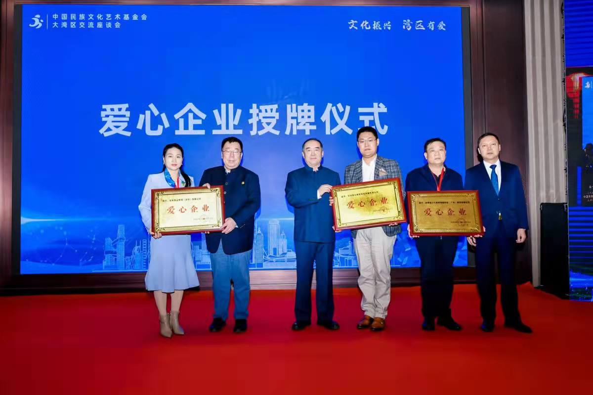 為了牢固樹立良好長久合作關系,共同推動大灣區(qū)民族文化發(fā)展,主辦方還為戰(zhàn)略合作伙伴中國文化傳媒集團南方總部基地,以及深圳智元教育文化傳播有限公司、四季熊少兒教育物聯(lián)科技(廣東)股份有限公司、名家物業(yè)管理(深圳)有限公司三家愛心企業(yè)舉行了授牌儀式。