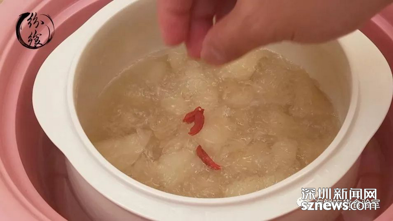 放入適量冰糖和枸杞,蓋上燉盅蓋子繼續(xù)燜10分鐘便可享用了。