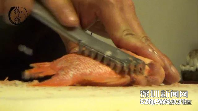 ??將紅寶石打鱗去除內(nèi)臟。
