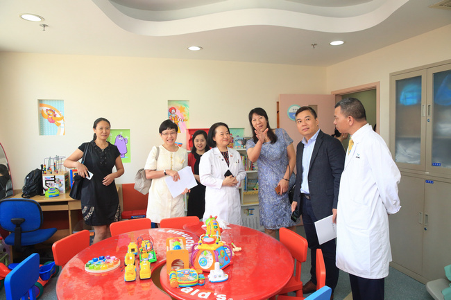活動(dòng)嘉賓參觀設(shè)在上海兒童醫(yī)學(xué)中心內(nèi)病區(qū)內(nèi)的麥當(dāng)勞叔叔愛心活動(dòng)室