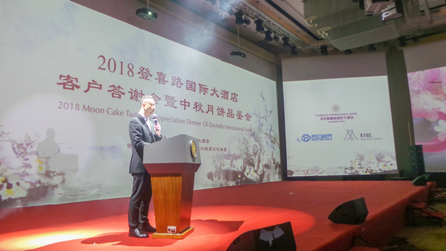 活動(dòng)開始,登喜路國際大酒店總經(jīng)理譚志堅(jiān)先生為晚會(huì)致辭。譚先生希望借此次品鑒會(huì),讓來賓對(duì)登喜路月餅有全新的認(rèn)識(shí),更衷心的希望,在這次晚宴上彼此能夠進(jìn)行深入溝通,增進(jìn)互信,加強(qiáng)合作,共敘友誼,共謀發(fā)展!