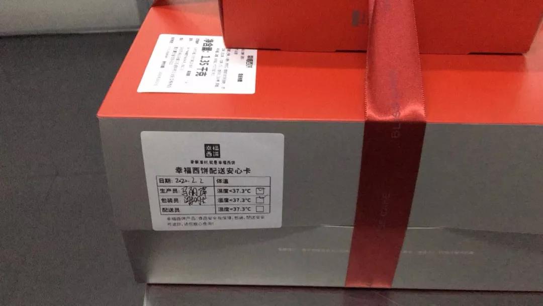 “你們安全,我們安心”,幸福西餅正逐步采取“無接觸配送”的措施并使用配送安心卡。用戶下單后,可通過訂單備注或電話溝通等方式,與配送員協(xié)商將產(chǎn)品放置在指定位置,且配送員需與用戶保持一定距離,降低感染風(fēng)險。