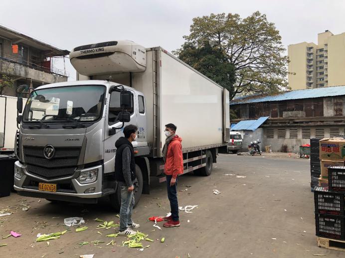 從那個(gè)時(shí)候開始,道巖每天六七點(diǎn)就要起床,去往海吉星批發(fā)市場進(jìn)行采購。“年三十開始,主管要求我們在外面跑的全部要帶上口罩”。朱永鏗說,春節(jié)的深圳靜悄悄的,路上幾乎碰不到幾個(gè)人,馬路上偶爾一輛車很快開過。獨(dú)自走在路上就會(huì)想起這個(gè)疫情、想起家人的擔(dān)憂,但來到批發(fā)市場里面,忙碌的氣氛容不得他胡思亂想了。