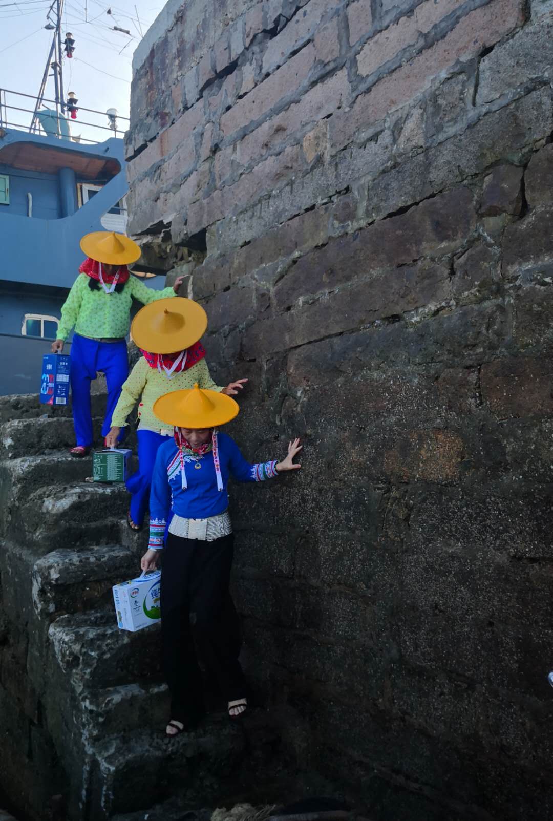 衣著獨特的惠安女采購回來