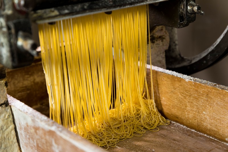 竹升面的精妙在于面味與堿水之間的平衡。堿水決定爽度,面粉決定了硬度和面香。堿水通常分3個(gè)度,19.5度、32度和52度,香港竹升面堿水通常用52度的,更為爽口,幾乎一咬即斷;斌哥用的是19.5度的堿水,表現(xiàn)的是恰到好處的爽。面粉必然要用高精面粉,但市面上的面粉那般多,要選合心水的實(shí)屬不易,他足足換了20多種,最后才選到合意的。25斤面粉,加上13斤鴨蛋,抽去蛋黃,只用蛋清,這也是增加面條爽度的法子,整個(gè)過(guò)程不加入一滴水。