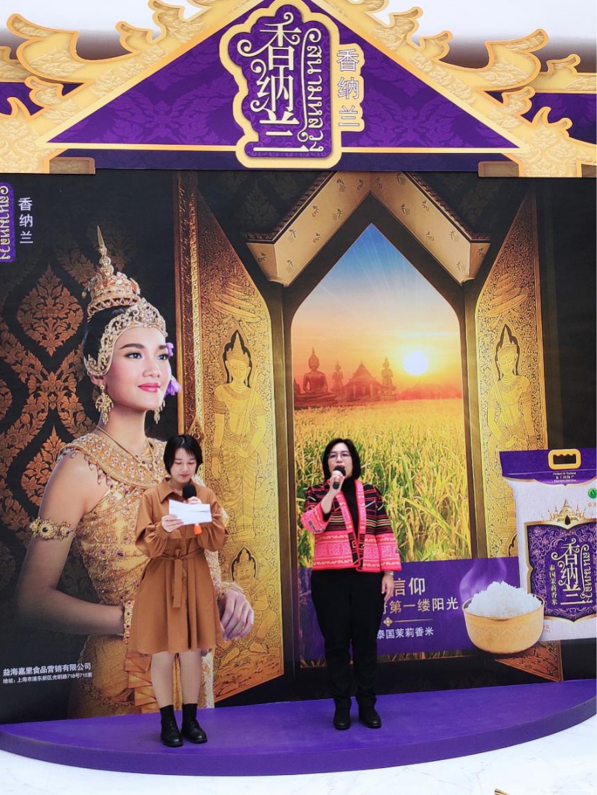 12月7日,香納蘭“泰”好吃樂,陽光之旅/益+秀新米品鑒展示活動在上海金龍魚大廈隆重舉行,益海嘉里集團特邀泰王國駐上??傤I事館農業(yè)處領事吳佩賢女士參加活動并致辭助力香納蘭,本次活動形式豐富多彩,不僅有干貨十足的泰米知識介紹和專業(yè)泰廚現場教學,還有美味的泰米試吃和有趣的互動游戲。與此同時,本次活動將通過線上直播擴大傳播范圍,讓更多消費者了解香納蘭品牌的同時也能感受到獨特的泰國文化魅力。為了讓中國消費者更進一步了解泰國茉莉香米在泰國人民心目中的地位,泰國領事吳佩賢女士在直播間和粉絲做了短暫的分享。
