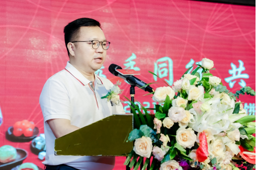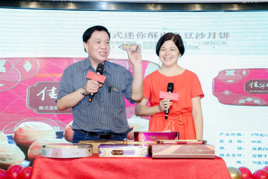佳寧娜食品深圳首席品牌官及運(yùn)營總監(jiān)潘小兵在活動現(xiàn)場講解2021年熱銷月餅