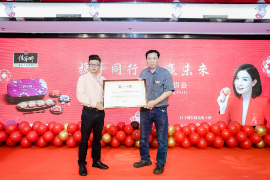 中際烘焙協(xié)會劉科元會長為佳寧娜頒授“2021中國烘焙十大金牌月餅金獎”榮譽(yù)