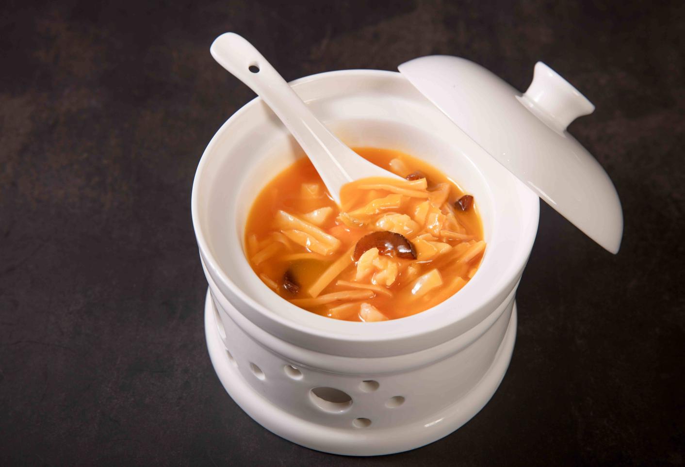 蟹粉海皇羹:甄選多種海洋珍饈,肉厚品佳的海參,軟嫩滑爽的鮮鮑,白如玉簪的白靈菇,在蟹粉濃湯的渲染下,一湯匙入口,滿滿都是精華;