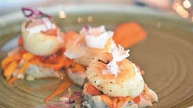 選材對海鮮的烹飪很重要。例如這款香煎帶子,酒店行政總廚Francesco建議選取加拿大新鮮帶子,個(gè)頭大,肉質(zhì)鮮嫩多汁,口感更為Q彈。