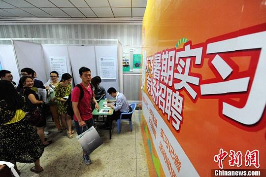 資料圖片:長(zhǎng)沙舉辦暑期實(shí)習(xí)生專場(chǎng)招聘 來(lái)源:中新社