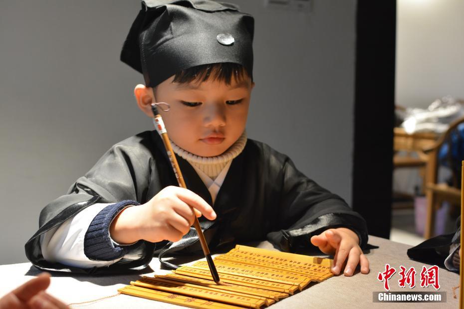 10月16日,在“道教名山”、世界自然遺產(chǎn)地江西上饒三清山,5名來自中外的萌娃身穿統(tǒng)一道服,手持竹簡,在三清宮跟著道教師傅朗讀《道德經(jīng)》、《弟子規(guī)》,學習太極拳、書法、古箏等中國傳統(tǒng)文化。這群萌娃中年齡最小的僅11個月,年齡最大也只有6歲。程希雪攝