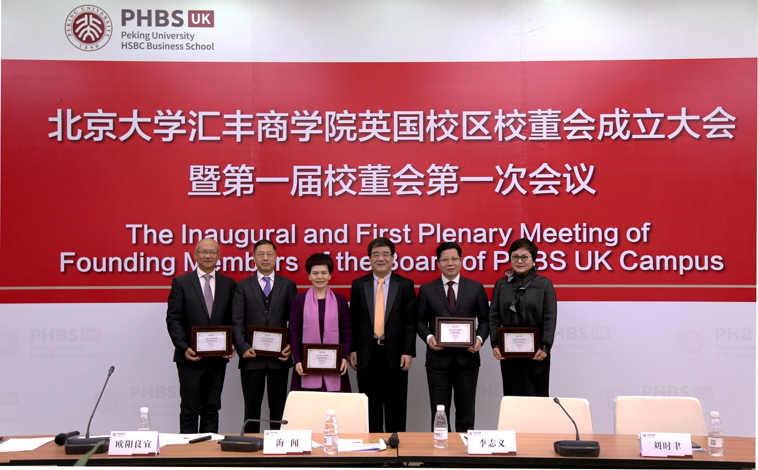 2018年1月13日,北京大學匯豐商學院英國校區(qū)校董會成立大會暨第一屆校董會第一次會議在學院509會議室隆重舉行。北京大學校務(wù)委員會副主任、匯豐商學院院長海聞,副院長李志義、歐陽良宜,20位創(chuàng)始校董及學院相關(guān)部門負責人出席了會議。會議由歐陽良宜副院長主持。