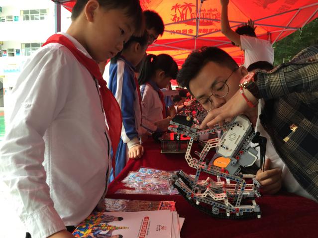 同期,愛匯百變教育科技有限公司也給同學帶來了炫酷多彩的編程大餐。通過對EV3編程機器人項目LEGO方針機械機構以及LEGO圖形化編程展示,邀請現(xiàn)場同學進行對套件進行組裝、編程控制,普及編程和電磁感應現(xiàn)象、電動基本原理、電路等物理知識,鍛煉學生科學創(chuàng)造思維,培養(yǎng)學科興趣。