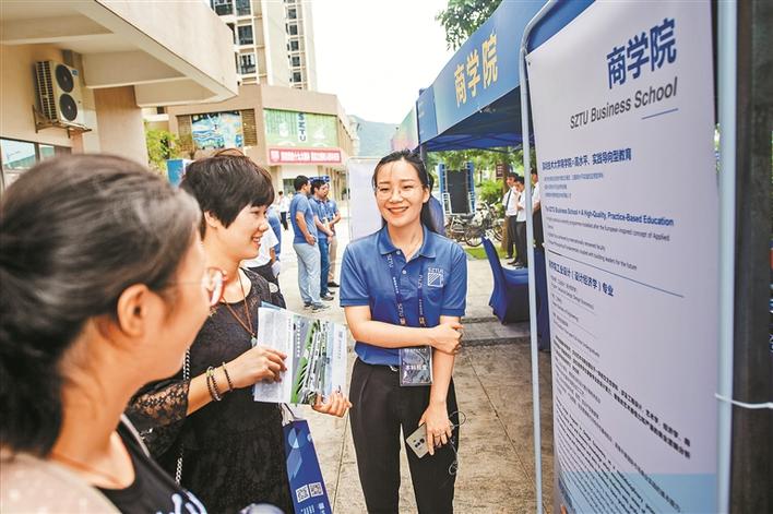 為了使廣大學生、家長和更好地了解深圳技術大學的招生辦學特色,由深技大各學院、部門的師生志愿者組成的招生咨詢隊伍在高溫下以燦爛的笑容、體貼的服務為考生及家長現(xiàn)場答疑解惑,在咨詢隊伍中,不乏院長和外籍教授的身影。