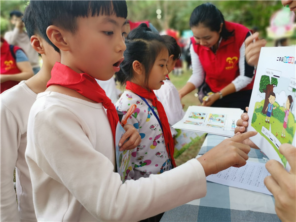據(jù)悉,本次活動(dòng)以闖關(guān)的形式,每年級(jí)各分10個(gè)關(guān)卡,每闖一關(guān)就獲得一個(gè)能量動(dòng)物或者能量植物填補(bǔ)闖關(guān)卡的空白,各年級(jí)的學(xué)生需要在半小時(shí)內(nèi)將闖關(guān)卡的空白處填滿,才算闖關(guān)成功,獲得有校長(zhǎng)贈(zèng)言的書(shū)籍一本。關(guān)卡的設(shè)置以語(yǔ)文、數(shù)學(xué)和英語(yǔ)三個(gè)科別組成,其中,最受孩子們青睞的要數(shù)“筆架說(shuō)話”這個(gè)關(guān)卡,孩子們把自己相像成筆架山的一員,然后介紹自己,有同學(xué)說(shuō):“我是筆架山的大樹(shù),我可以給大家遮蔭,讓大家不用被太陽(yáng)曬到?!?、“我是筆架山的石頭,孩子們來(lái)筆架山玩的時(shí)候,可以把我們拼在一起做拼圖。”、“我想成為筆架山的暗綠繡眼鳥(niǎo),就是嘴巴尖尖的,頭上綠綠的,眼睛邊上有點(diǎn)白色的那種,我要站在筆架山的枝頭上盡情歌唱,紅紅的火焰花為我做背景!”......孩子們通過(guò)豐富的相信力,盡情在老師與家長(zhǎng)義工面前展現(xiàn)臨場(chǎng)的表達(dá)能力。